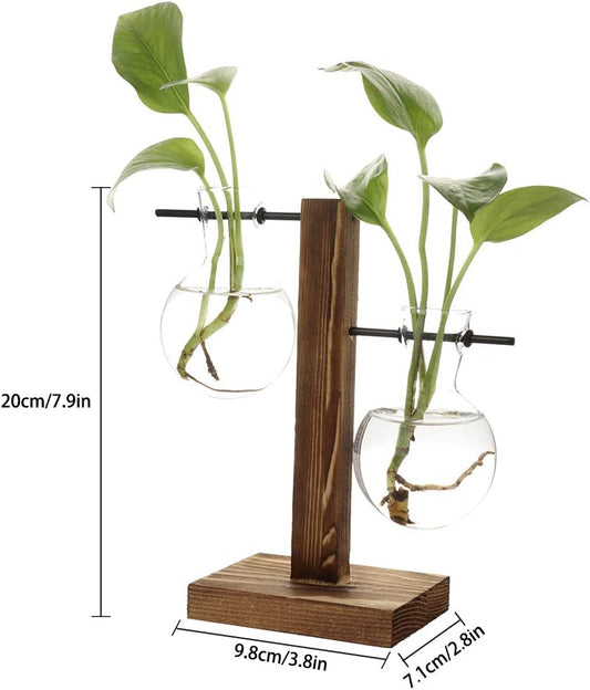 Hydroponic Vase Water Propogating Vase Station Plant Terrarium with Wooden Stand Air Planter Bulb Glass Vase Desktop Planter Glass Bulb Vase Retro Hanging Plant Glass Vase Home Decor